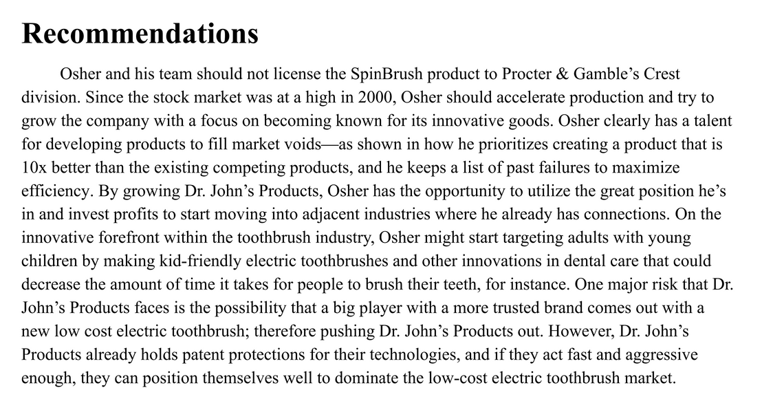 During my I&E352 Innovation and Entrepreneurship Keystone Course, I had the opportunity to work in teams to create a variety of case studies. These case studies include a look into Qualitative and Quantitative analyses, as well as recommendations for the future steps for each company. Below are a few examples of the slides my team and I created.